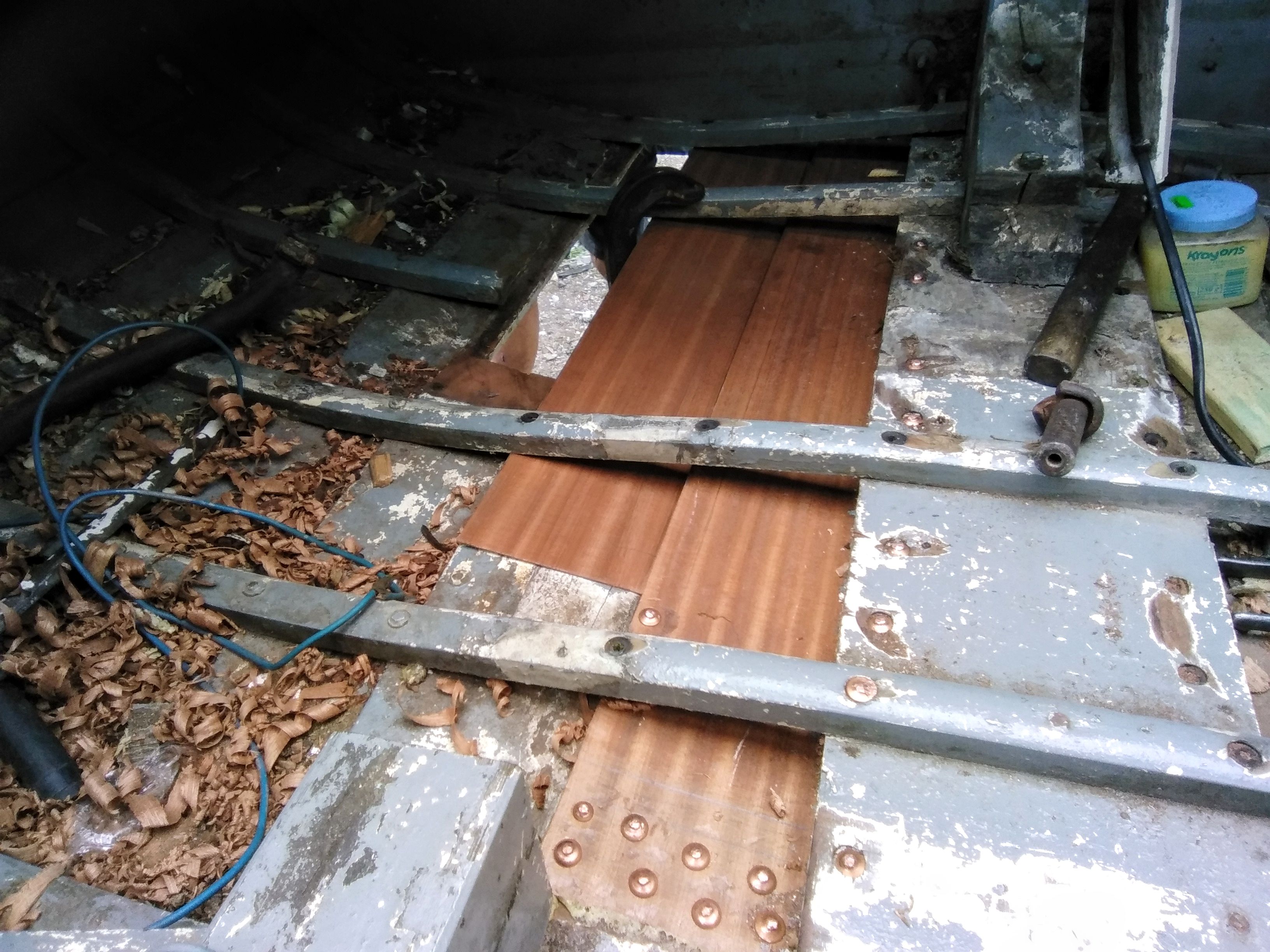 New Garboards and Planking where the Shaft Bracket had damaged the Planking Summer 2021.